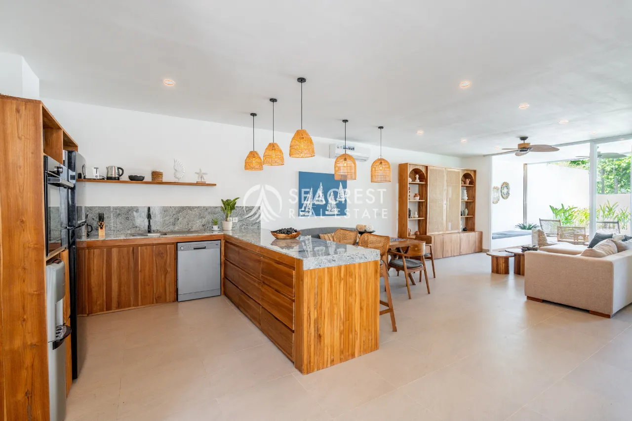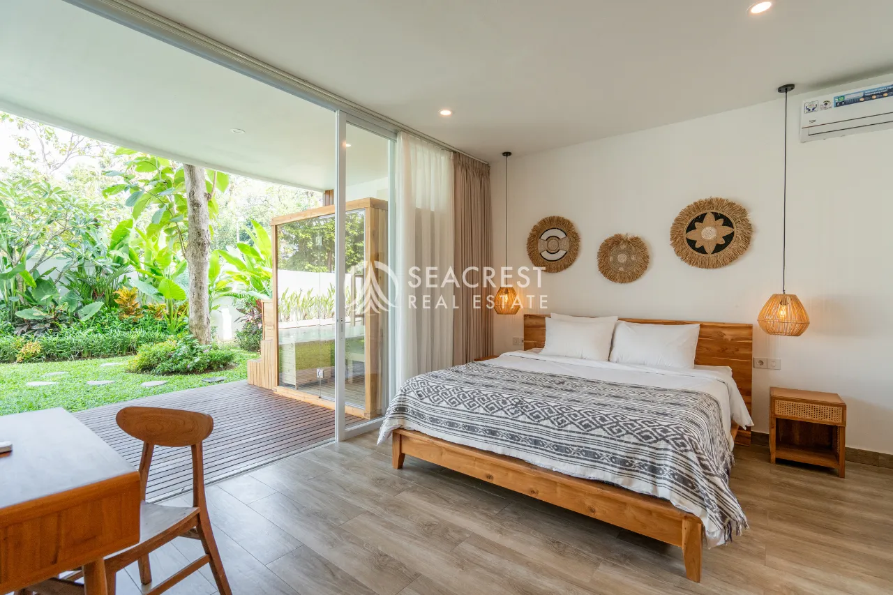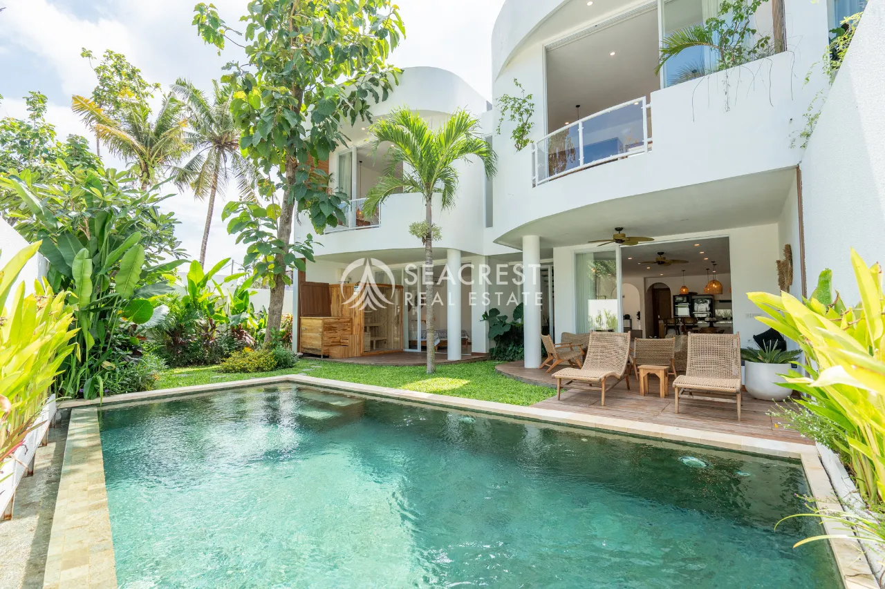 Introducing this beautiful 3-bedroom villa located in the fast-growing Kedungu area, home to Bali’s newest lifestyle scene and just minutes from the beach. Built on 271 m² of land with a spacious 200 m² building, the villa blends contemporary tropical architecture with warm wooden accents, creating an inviting and comfortable atmosphere. Large sliding doors open to the lush garden and a 27 m² swimming pool, giving the home a bright, airy flow throughout the living, dining, and kitchen spaces.
