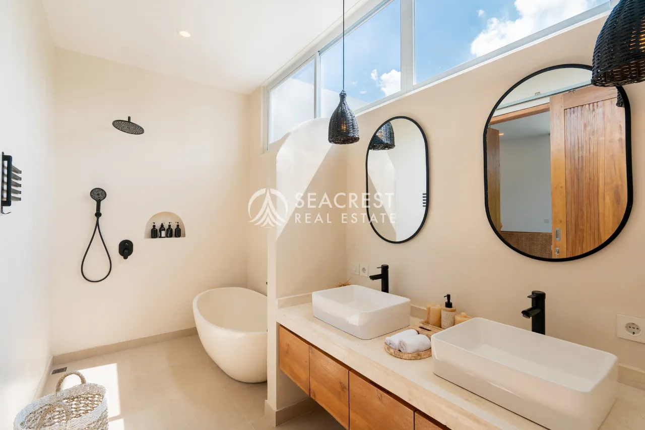 The villa features 3 bedrooms and 4 bathrooms, all designed with a clean modern aesthetic. With a 30-year lease (extendable until July 2055), this property offers excellent potential as a private residence or a high-performing rental asset in one of Bali’s most promising coastal markets.