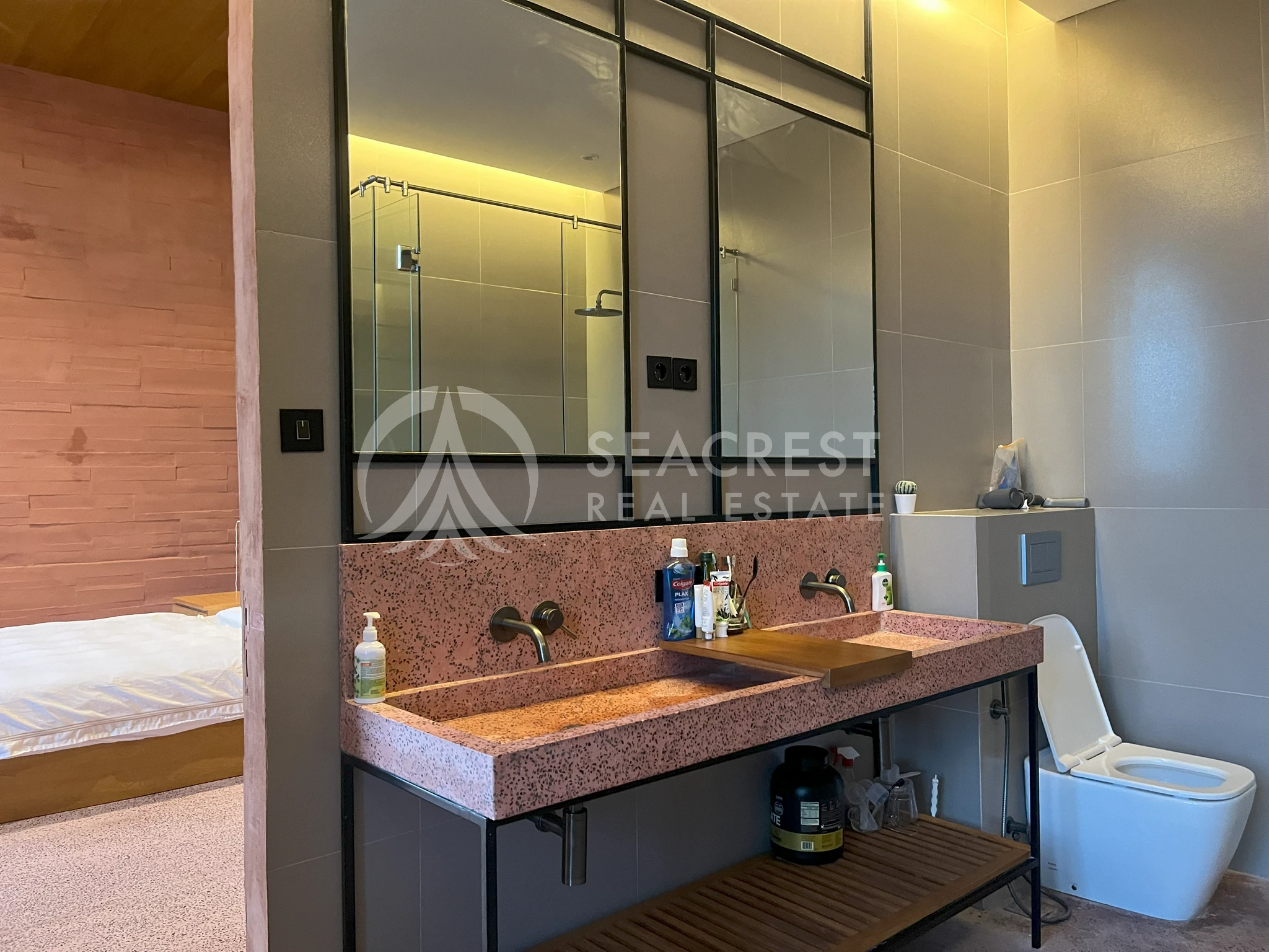 The top floor opens to a fully equipped rooftop gym, two home office setups with Herman Miller chairs, and panoramic sunset views over Atlas Beach Club and the ocean. Built with long-term comfort in mind, the property includes high-speed Starlink internet, a powerful 33,000 VA electricity system, professional-grade water filtration, and solar water heating. Offered at USD 1 million with freehold title, this villa presents a rare opportunity for full ownership in one of Bali’s most desirable residential areas.