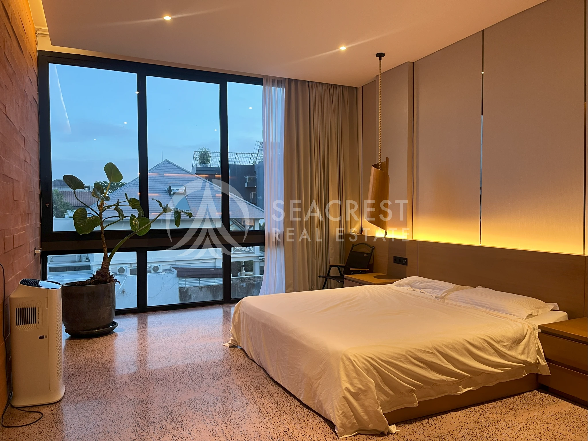 Discover a rare, design-forward luxury villa in the heart of Berawa—just minutes from the beach and Canggu’s top lifestyle destinations. Built across three levels and spanning approximately 470 sqm of living space, this fully furnished home combines tropical modern architecture with high-end functionality. Crafted by a 5-star hotel architect, every detail has been thoughtfully curated, from the soaring ceilings and open-plan layout to the soft finishes and textures that create a true sense of calm.
