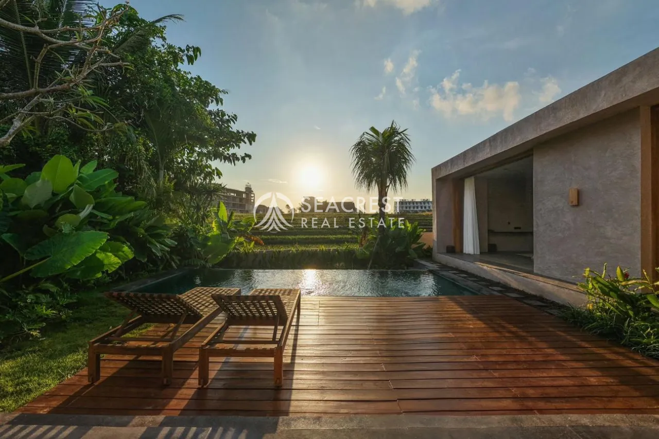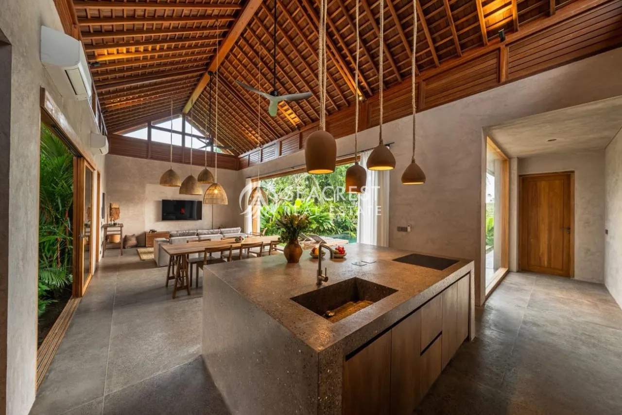 Discover a serene tropical haven in the peaceful village of Cemagi, just 5 minutes from Seseh Beach. This beautifully designed 2-bedroom villa blends natural materials, contemporary comfort, and a warm minimalist style, creating a home that feels intimate yet luxurious.
