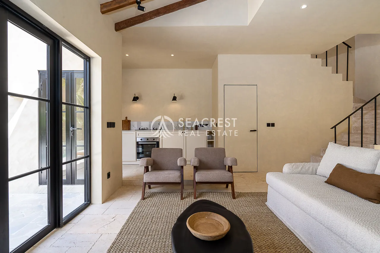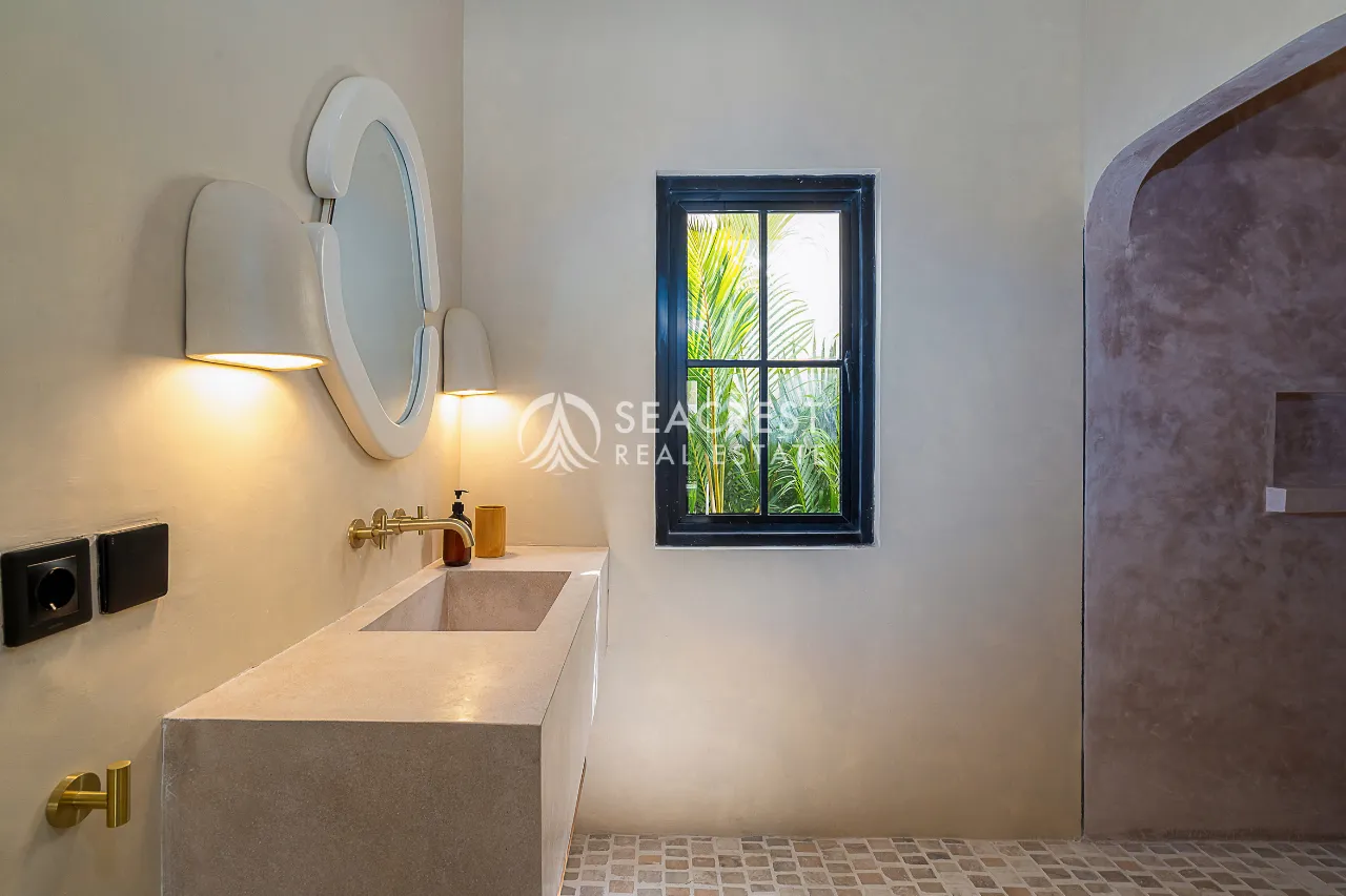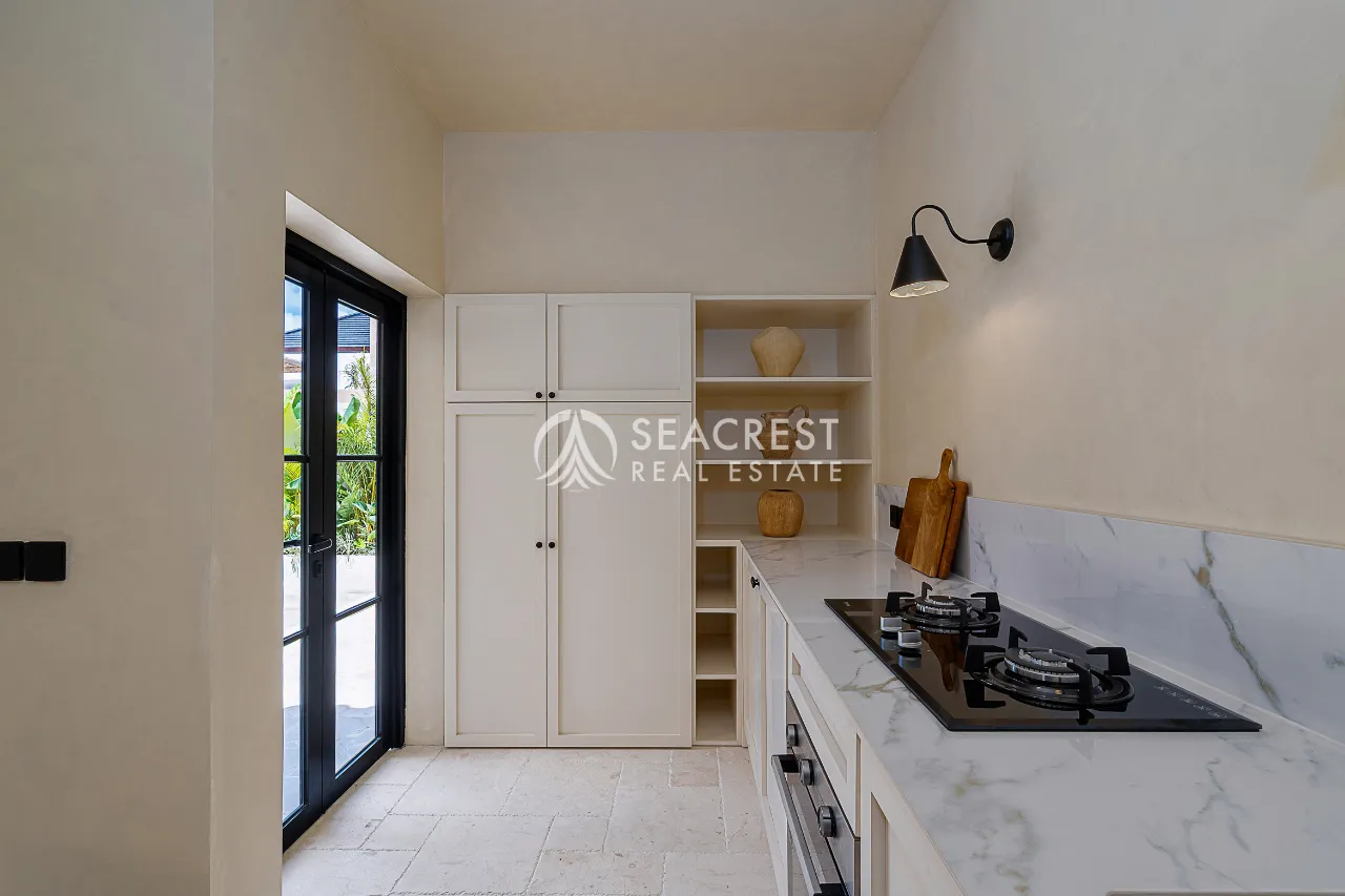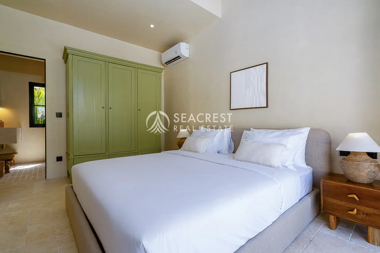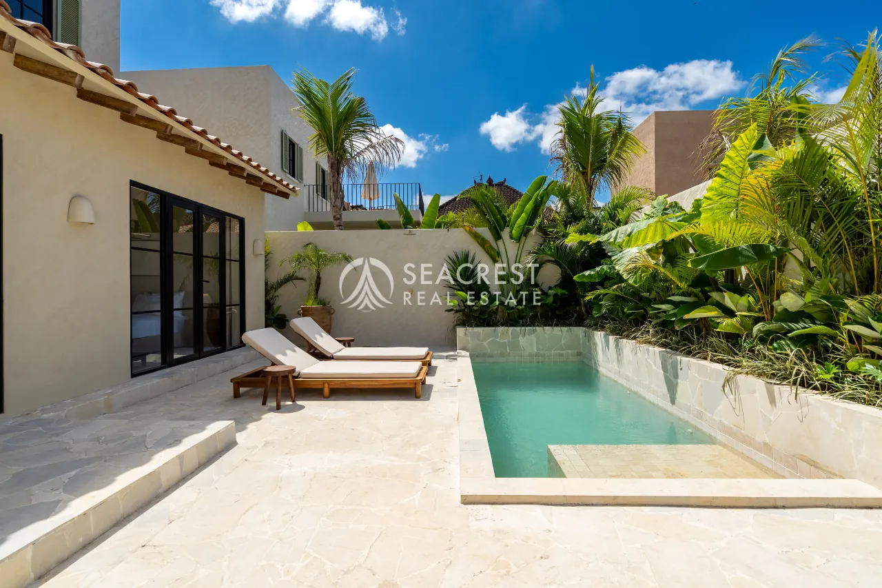 Step into a thoughtfully designed 2-bedroom villa that blends Mediterranean elegance with contemporary tropical living. This exclusive villa harmonizes modern Spanish influences with organic textures, lush greenery, and a Wabi-Sabi-inspired interior, creating a warm and inviting atmosphere. The spacious 125 sqm building sits on 167 sqm of land, meticulously designed to ensure privacy, functionality, and style.
