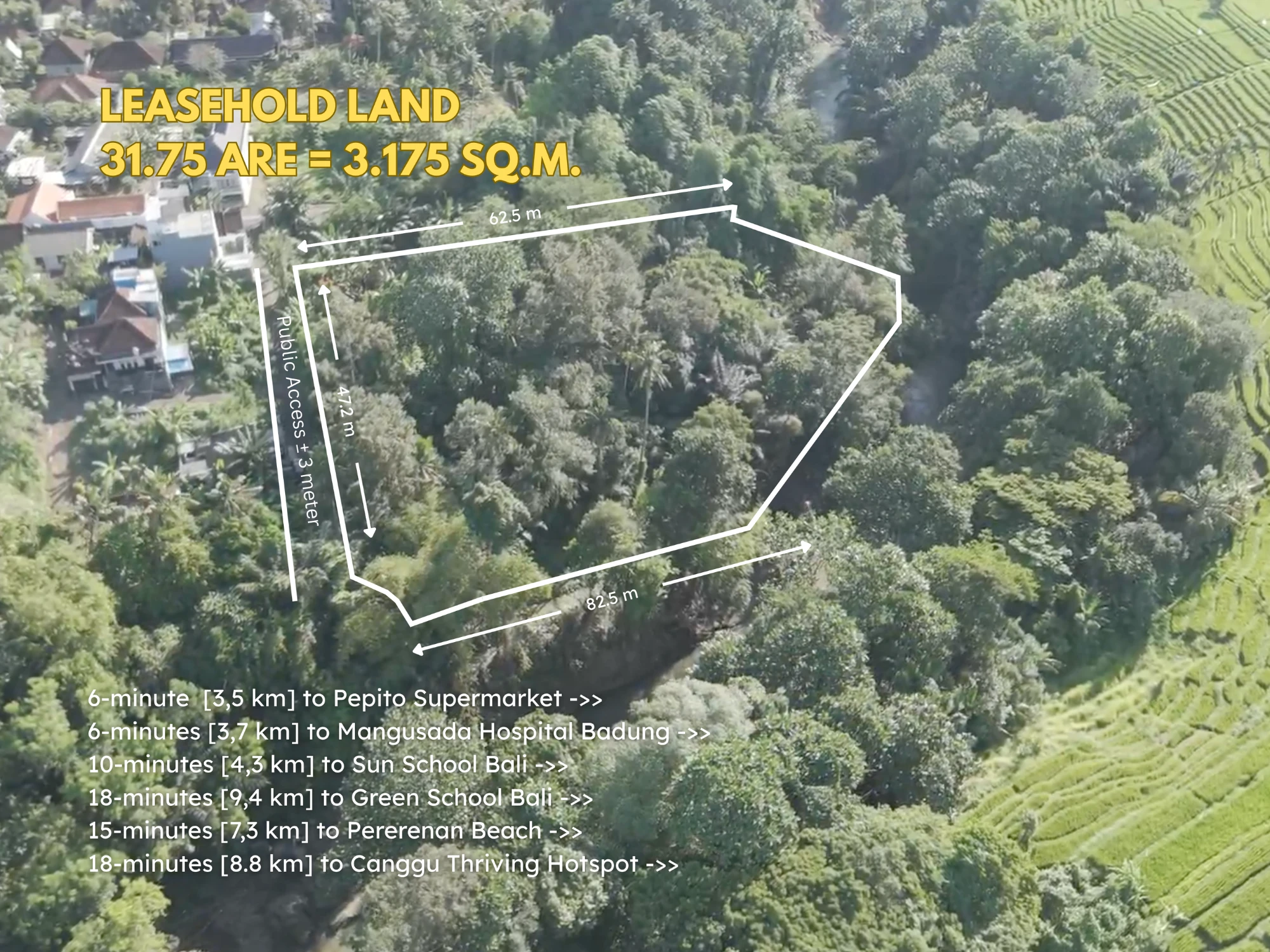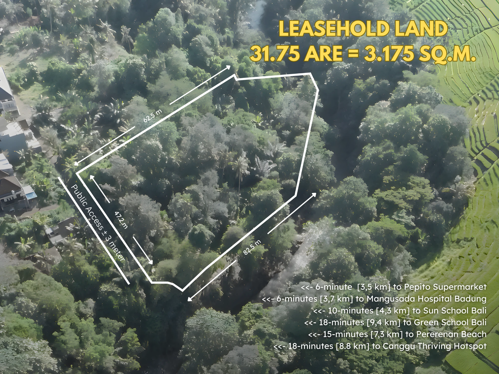 Land Dimension : 82 m² x 47,2 m