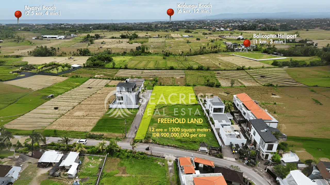 Discover an exceptional opportunity to own freehold land in the rapidly growing area of Pantai Nyanyi, Tabanan. This 12 Are (1,200 sqm) plot offers stunning rice field views and is strategically located near key destinations, making it an ideal investment for private villas or commercial development.